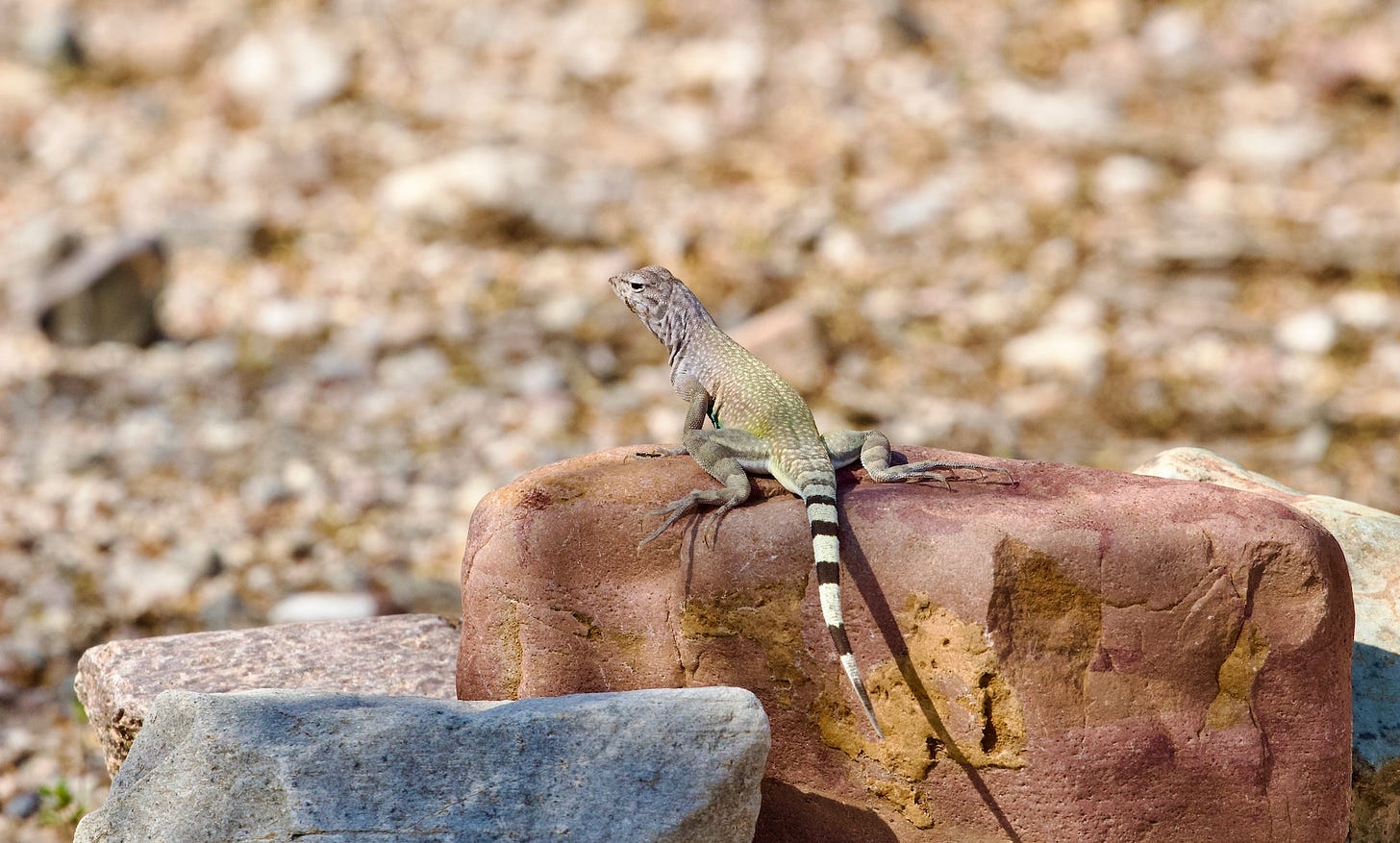 Yesterday I stopped outside to take a walk, and at least six lizards scattered before me as though I were the bow of a ship and they were the waves moving away. When birds do this—scatter when you near—it’s called plowing. So I suppose the lizards plowed before me. Most of them were zebra-tailed lizards, like this. They are an interesting creature. They move ahead of us often, as though leading us away from something, wagging their upturned tail the whole way. This one is male; note the green on its belly.