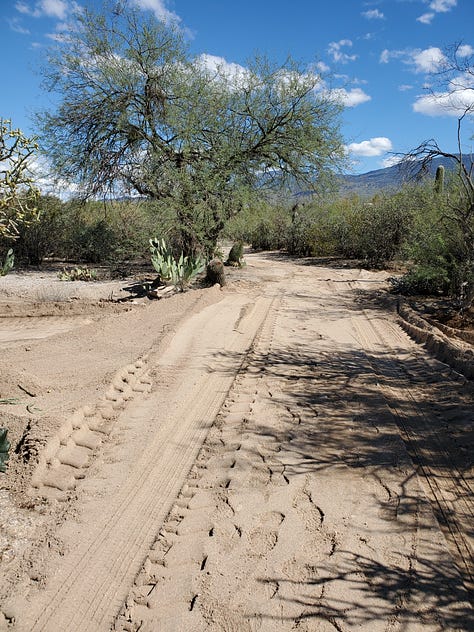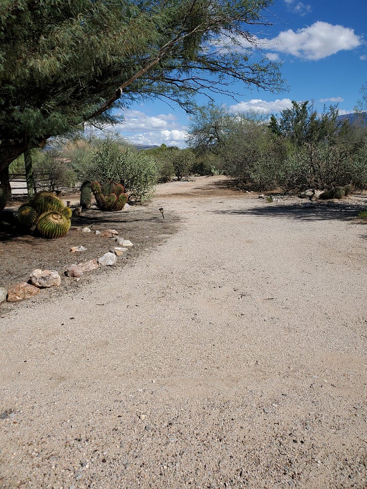 Looking toward the wash, down the driveway: