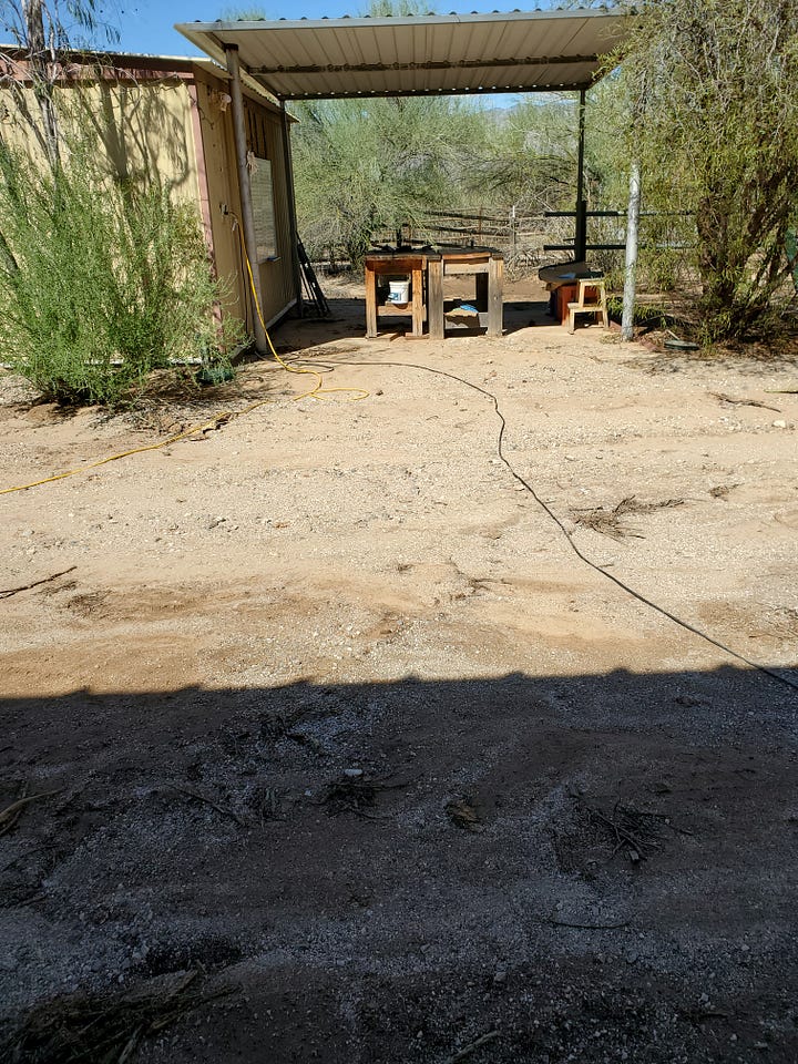 This is at the carport looking at our work area: